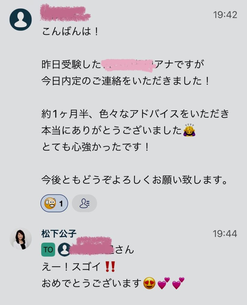 嬉しい内定報告です♪